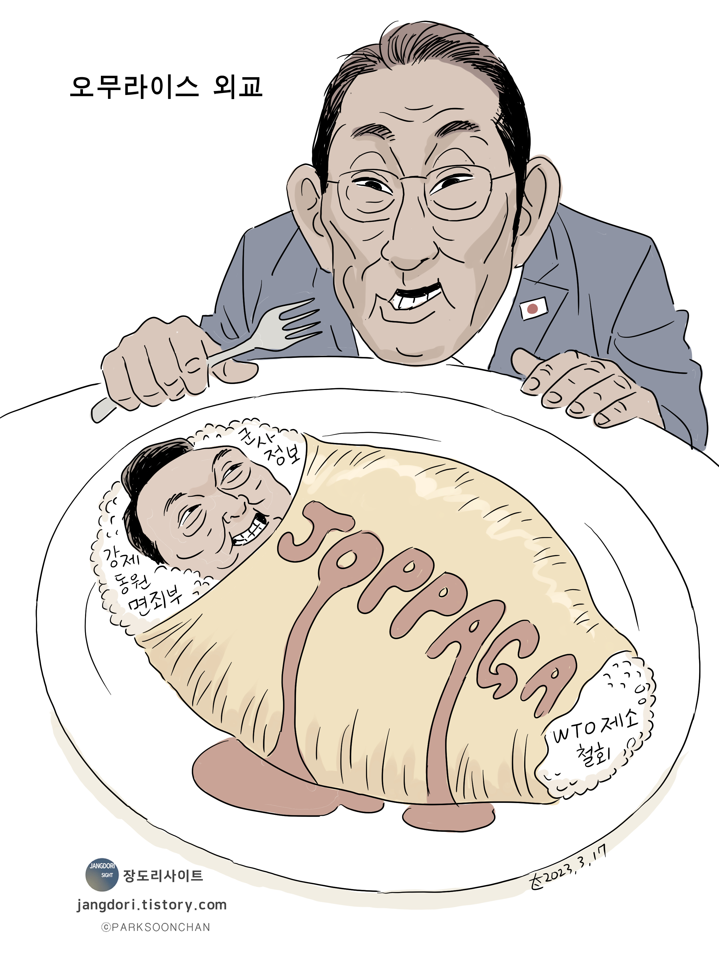 윤석열 대통령이 일본을 방문해 한일 정상회담을 갖고 일제 강점기 강제징용 피해자들의 배상액을 제3자가 변제하겠다는 방침에 대해, 피해 배상을 위한 구상권 청구는 없을 것이라고 확약했다.