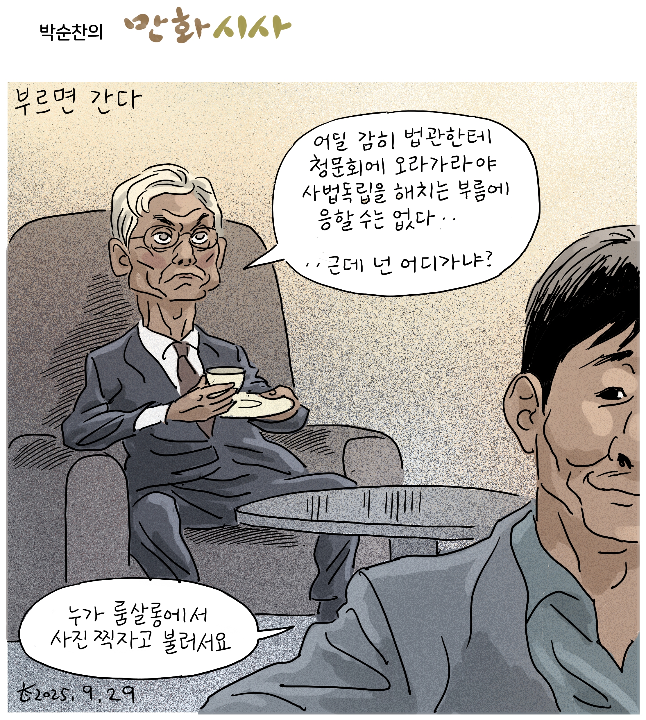 만화 <부르면 간다> by 박순찬 2025. 10. 1. 반응형 공유하기 게시글 관리 장도리 사이트 저작자표시 비영리 변경금지 (새창열림) '만화' 카테고리의 다른 글 <진영논리> (2) 2025.10.04 <검사의 전통> (2) 2025.10.03 <안전불감증> (2) 2025.09.30 <정언교일치> (3) 2025.09.27 <한강의 숙적> (2) 2025.09.26 관련글 <진영논리> <검사의 전통> <안전불감증> <정언교일치> 댓글