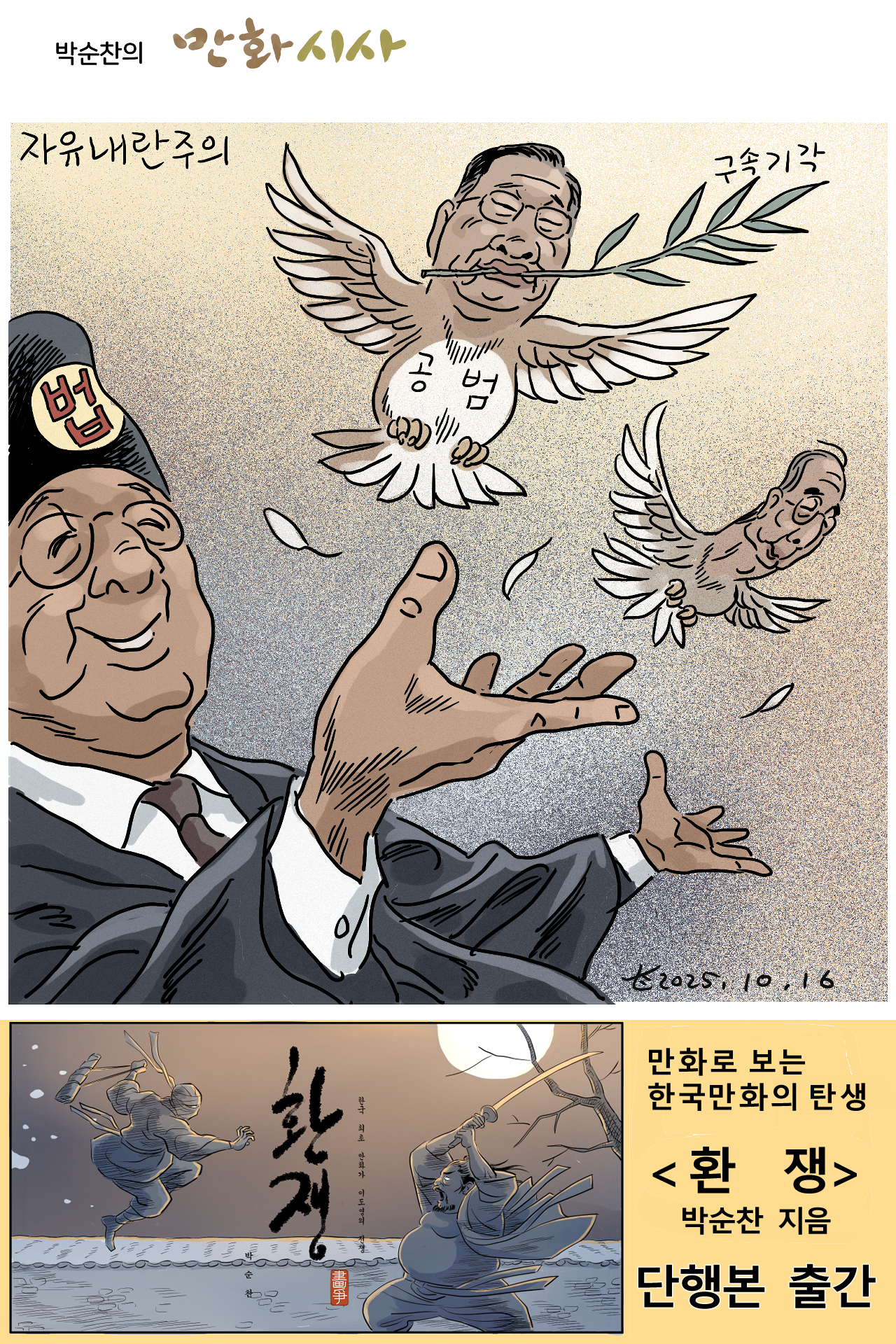 만화 <자유내란주의> by 박순찬 2025. 10. 18. 반응형 #사민언론민들레 공유하기 게시글 관리 장도리 사이트 '만화' 카테고리의 다른 글 <뇌물과 월급> (2) 2025.10.22 <장하다> (5) 2025.10.21 <어느 검사의 눈물> (2) 2025.10.17 <두 진우> (2) 2025.10.15 <망령을 부탁해> (1) 2025.10.15 관련글 <뇌물과 월급> <장하다> <어느 검사의 눈물> <두 진우> 댓글