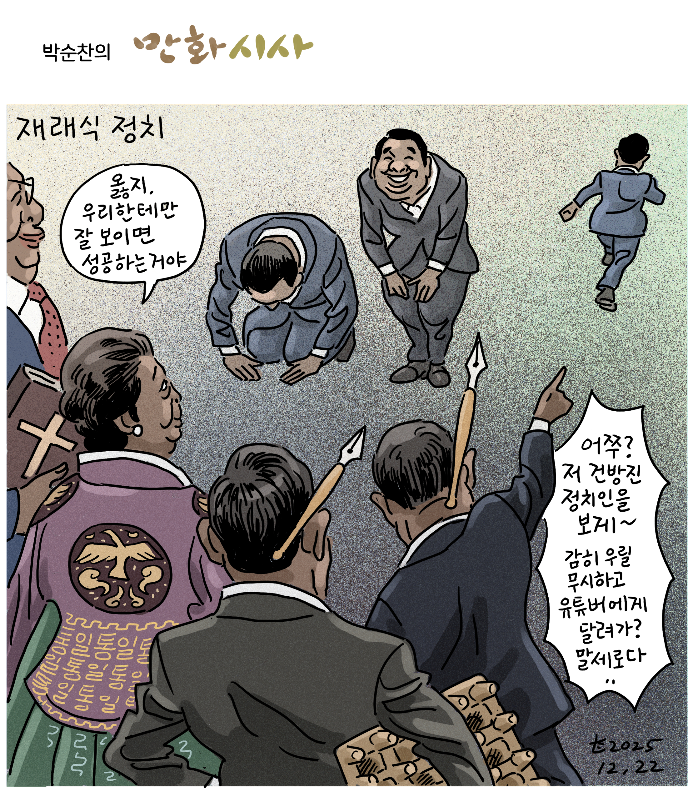 만화 <재래식 정치> by 박순찬 2025. 12. 24. 반응형 공유하기 게시글 관리 장도리 사이트 저작자표시 비영리 변경금지 (새창열림) '만화' 카테고리의 다른 글 <불러낸 불청객> (2) 2025.12.23 <내란기업> (0) 2025.12.20 <양두희대> (1) 2025.12.19 <재래식 로비> (1) 2025.12.17 <그날의 분노> (0) 2025.12.16 관련글 <불러낸 불청객> <내란기업> <양두희대> <재래식 로비> 댓글